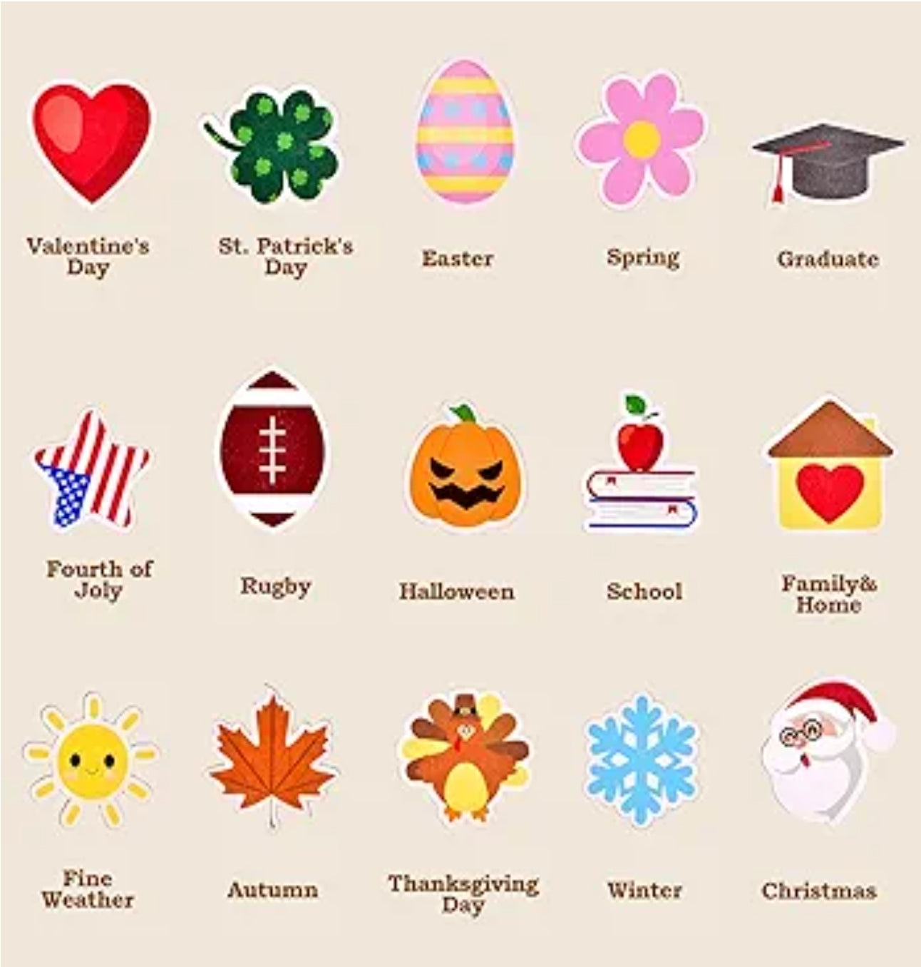 The round wire frame base is embellished with beige & cream colored deco mesh, ribbon tails and a wooden sign that reads: Welcome to our Home along with 15 wooded interchangeable designs. Measurements: diameter 24” x 7” depth.